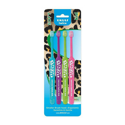 Ekulf Twice Kid är en tandborste speciellt utvecklad för barn mellan 3-6 år. Borsten har en kompakt design, rundad topp och mjuka borst. Borsthuvudet är väsentligt mindre än hos en vanlig tandborste.