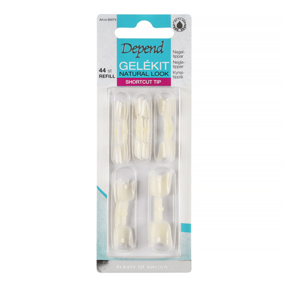 Depend Shortcut Tip Natural Refill innehåller 44 st. tunna, flexibla spetsar som minskar behandlingstiden med 35 %, eftersom filning inte behövs för att släta ut nageln. De konstgjorda naglarna ingår i Depends nylanserade sortiment, som har en perfekt passform och en mjukare, slätare kant vid nagelbanden, vilket gör Depend Shortcut Tip Natural Refill mer behagliga att bära.