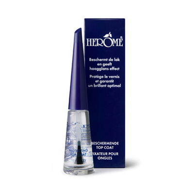 Med denna Herome Protecting Top Coat undviker du att skada dina naglar eller nagellack, eftersom topplacket ger ett hårt skyddande lager på naglarna. Den transparenta Top Coat är både skyddande och vattenavvisande, samtidigt som den fräschar upp färgen på nagellacket. Top Coat ger en vacker glans, så att dina naglar ser vackra och välvårdade ut.