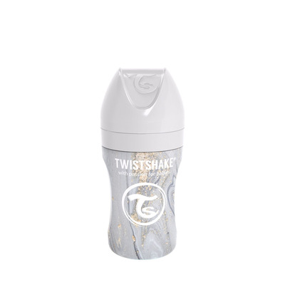 Twistshake Nappflaska i rostfritt stål och fint marmormönster - Smart, ergonomisk flaska med unikt anti-koliksystem