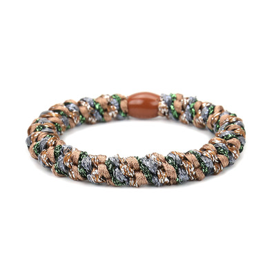 Fin hårsnodd i den mycket populära tvinnade designen, som har en kraftig resår, som är klädd med ett färgat band. Snodden bidrar till att piffa upp din outfit samtidigt som håret hålls på plats. Den kan användas i både tjockt och tunt hår, och tvinnas runt håret hur många gånger du vill tills det får önskat fäste. Denna resår är brun, grön og blå.