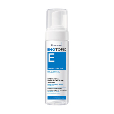 Emotopic Physiological Moisturizing Foam Shampoo från Pharmaceris E-serie är ett skumschampo utvecklat speciellt för att återfukta och lindra torr och känslig hårbotten hos både spädbarn, barn och vuxna. Den milda formelns innehåll av bioaktivt D-panthenol och betain säkerställer optimal återfuktning, minskar klåda och skyddar effektivt mot irritation. Kamomillextrakt har en förstärkande och regenererande effekt på håret, som lämnas silkeslent efter varje användning.