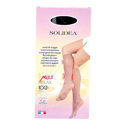 Solidea Miss Relax 100 den. är en knähög stödstrumpa för kvinnor i svart