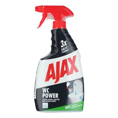 Håll din toalett ren och skinande med Ajax WC Power Spray. Detta toalettrengöringsmedel är tillverkat av ingredienser med 99 % naturligt ursprung och gör rengöringen tre gånger enklare. För det första kräver det ingen sköljning. För det andra ger den omedelbar borttagning av kalkavlagringar.