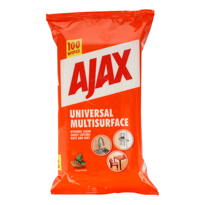 Ajax Universal Wipes är universalrengöringsservetter som enkelt och hygieniskt rengör alla tvättbara ytor. Dessa praktiska våtservetter tar lätt bort damm och smuts och är idealiska för användning i badrummet, köket eller på elektroniska enheter som tangentbord, datorer och mobiler.