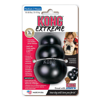 Fantastisk KONG Extreme-leksak för hundar som älskar att bita på saker, i ett material som är nästan omöjligt att tugga sönder. KONG Extreme kan användas till apportering då den rör sig oförutsägbart, och du kan även fylla den med våtfoder, snacks eller liknande. Den kan ges direkt till hunden eller frysas, vilket kan vara en fördel om hunden sväljer maten för snabbt. Lätt att rengöra, eftersom du kan lägga den i diskmaskinens övre korg.