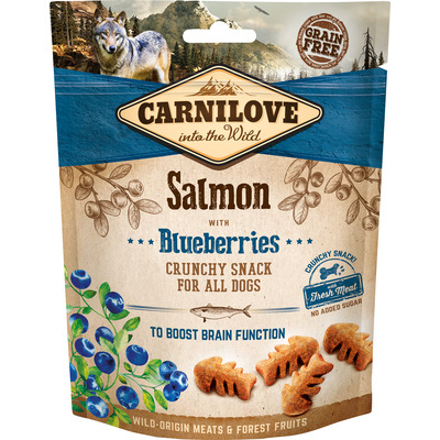 Letar du efter en ny och spännande variant av godbitar till din hund? Crunchy Snack från Carnilove är supergott, och godsakerna kommer definitivt att bli en hit hos de flesta hundar. Godsakerna är gjorda på lax och tillsatta blåbär för att ge en riktigt härlig smak. De är gjorda utan spannmål och tillsatt socker.