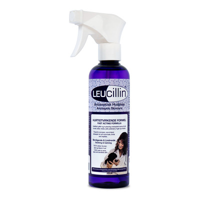 Leucillin Antiseptic Spray är en skonsam och effektiv lösning för hudvård och hygien hos djur. Den är utformad för att bekämpa bakterier, virus och svamp samtidigt som hudens naturliga balans bibehålls. Sprayen är pH-neutral och fri från steroider, antibiotika och alkohol, vilket gör den lämplig för känsliga områden. Leucillin kan användas för både små och stora sår, hudirritationer, insektsbett och andra hudproblem.