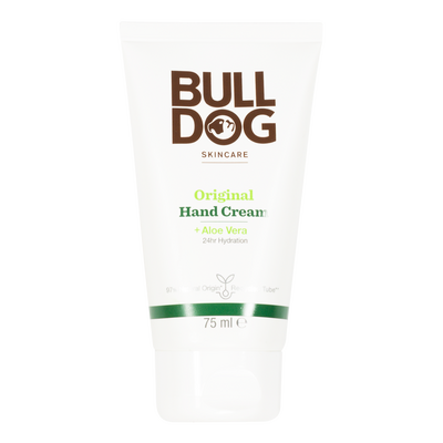 Bulldog Original Hand Cream är en effektiv handkräm för män med torra händer. Den innehåller 97% ingredienser av naturligt ursprung och är berikad med aloe vera, glycerin och vitamin E. Formuleringen innehåller också 8 eteriska oljor och jojoba för att ge näring och skydda huden utan att den blir fet. Krämen absorberas snabbt och lämnar händerna mjuka, lena och återfuktade.