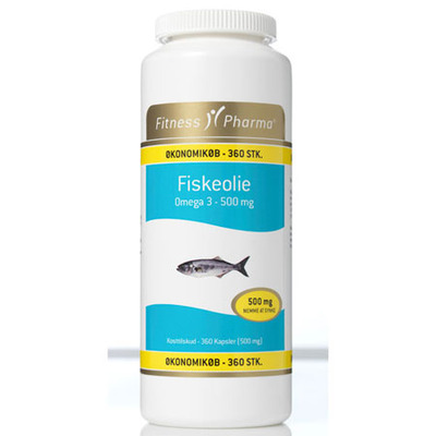 Fitness Pharma Fiskolja 500 mg är ett kosttillskott med naturlig fiskolja som utvinns ur sardin- och ansjovisarter. Varje kapsel innehåller fiskolja med omega-3-fettsyrorna EPA och DHA. DHA och EPA bidrar bl.a. till att bibehålla ett normalt blodtryck. Oljan har tillsatts en naturlig antioxidant för att skydda mot härskning och säkerställa god hållbarhet. Kapslarna är utformade för enkelt intag.