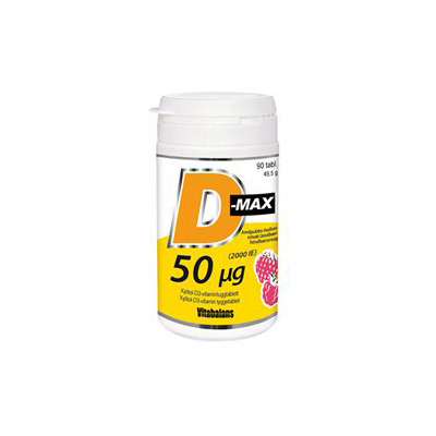D-Max 50 µg, är ett D-vitamintillskott i form av tuggtabletter, som på ett enkelt sätt säkerställer ett tillräckligt högt dagligt D-vitaminintag hos barn från 11 år, vuxna och äldre.