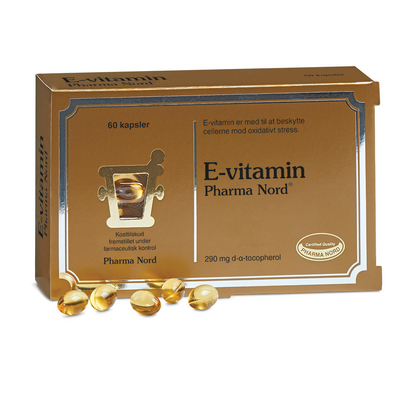 Bio-E-Vitamin från Pharma Nord är ett starkt vitaminpreparat för förebyggande och behandling av E-vitaminbrist. Vitaminpreparatet består av klara, mjuka gelatinkapslar med renad sojabönolja och naturlig d-a-tokoferol i en mängd som motsvarar 290 mg vitamin E. Vitamin E bidrar till att skydda cellerna mot oxidativ stress.