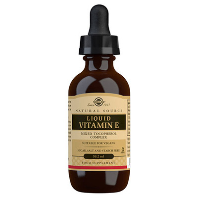 Flytande vitamin E från Solgar är ett kosttillskott som innehåller D-alfa, beta, gamma och deltatatokoferol i flytande form. E-vitamin är en kraftfull antioxidant som skyddar kroppens celler från oxidativ stress.