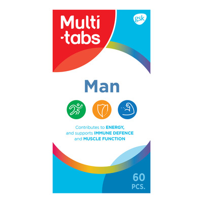 Multi-Tabs Man är ett dagligt kosttillskott för män från 11 år och uppåt. Produkten är sammansatt av vitaminer och mineraler som är anpassade till mäns behov. Den innehåller vitaminerna B6, B12 och C. Dessa vitaminer bidrar till en normal energimetabolism och minskar trötthet och utmattning.