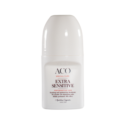 Extra Sensitive Deo från ACO är en mild, fuktgivande och lugnande kräm-deodorant som skyddar mot oönskad svett och lukt i upp till 48 timmar. Den är utan tillsatt alkohol och aluminium, vilket gör den särskilt bra för känslig hud. Deodoranten är dermatologiskt testad samt milt parfymerad.