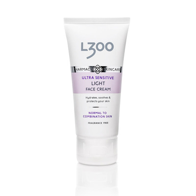 L300 Ultra Sensitive Face Cream- Light är en lätt, återfuktande ansiktskräm med lugnande och skyddande egenskaper särskilt lämplig för känslig hud som blir irriterad lätt. Krämen innehåller hudens egen fuktbevarande substans, betain, lugnande havreolja och panthenol samt E-vitamin som skyddar huden mot yttre påverkan