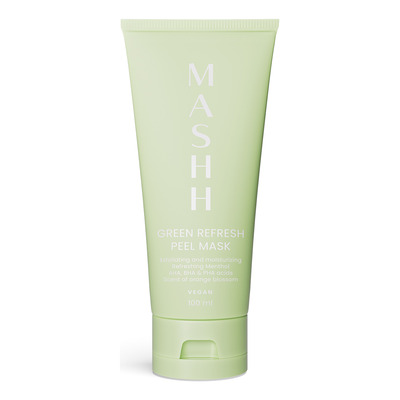 MASHH Green Refresh Peel Mask är en återfuktande och exfolierande ansiktsmask som har en kylande effekt tack vare mentolinnehållet. Masken innehåller en kombination av AHA-, BHA- och PHA-syror som effektivt avlägsnar döda hudceller och mjukgör huden. Samtidigt innehåller den skrubbande partiklar som ger en mekanisk exfoliering. Glycerin och polysackarider ger djup återfuktning och gör huden mjuk och mer mottaglig för efterföljande hudvård.