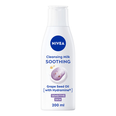 Nivea Sensitive Cleansing Milk är en rengöringsmjölk speciellt utvecklad för känslig hud. Rengöringsmjölken bidrar till att minska rodnad, torrhet och stramhet. Den har en vårdande formula med vindruvskärnolja och pro-vitamin B5 som rengör på djupet och tar bort makeup samtidigt som den ger fukt till huden. Rengöringen är utan parfym och dermatologiskt testad.