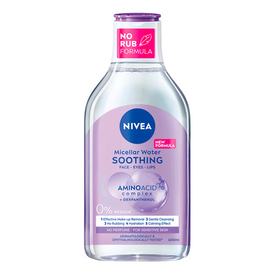 Nivea 5-in-1 Micellar Water Sensitive Skin har utvecklats speciellt för känslig hud. Micellar Water är extra mild och tar bort makeupskonsamt från ansikte, ögon och läppar. Den tar lätt bort makeupen utan att du behöver gnugga. Removern rengör huden skonsamt och verkar lugnande. Den är framställd med micellarteknologi som verkar som en magnet för makeup, smuts och fett. Micellar Water Sensitive är utan parfym och dermatologiskt testad.