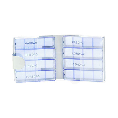 Medimax veckodoseringsask med stora fack och fast indelning är designad för personer som ska ta stora eller många tabletter dagligen. Dosetten är också perfekt för personer som har svårt att hantera smådelar eller har nedsatt syn. Locken är markerade med veckans 7 dagar och på sidan är det markerat morgen, middag, kväll och natt. Askarna har fast rumindelning ock skrivfält på baksidan.
