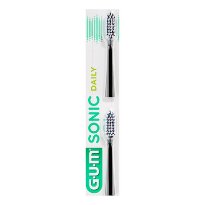 Gum Sonic Daily Brush Heads Soft i svart passar Gum Sonic Daily Tandborste, som ger daglig vård och extra djup, skonsam rengöring av tänderna. Den bidrar till att hålla ditt tandkött och dina tänder friska och håller din mun fräsch och ren varje dag. Tandborsten har soniska vibrationer som flyttar borsten från sida till sida och hjälper till att lösgöra plack på ett enkelt och behagligt sätt.