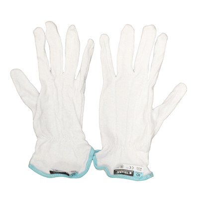 Bomullsvantar i oblekt bomull - lämpliga som innervantar, vid eksem eller fuktiga händer. Vanten har ett långt skaft som gör den behaglig att bära samt motverkar att den glider ner.